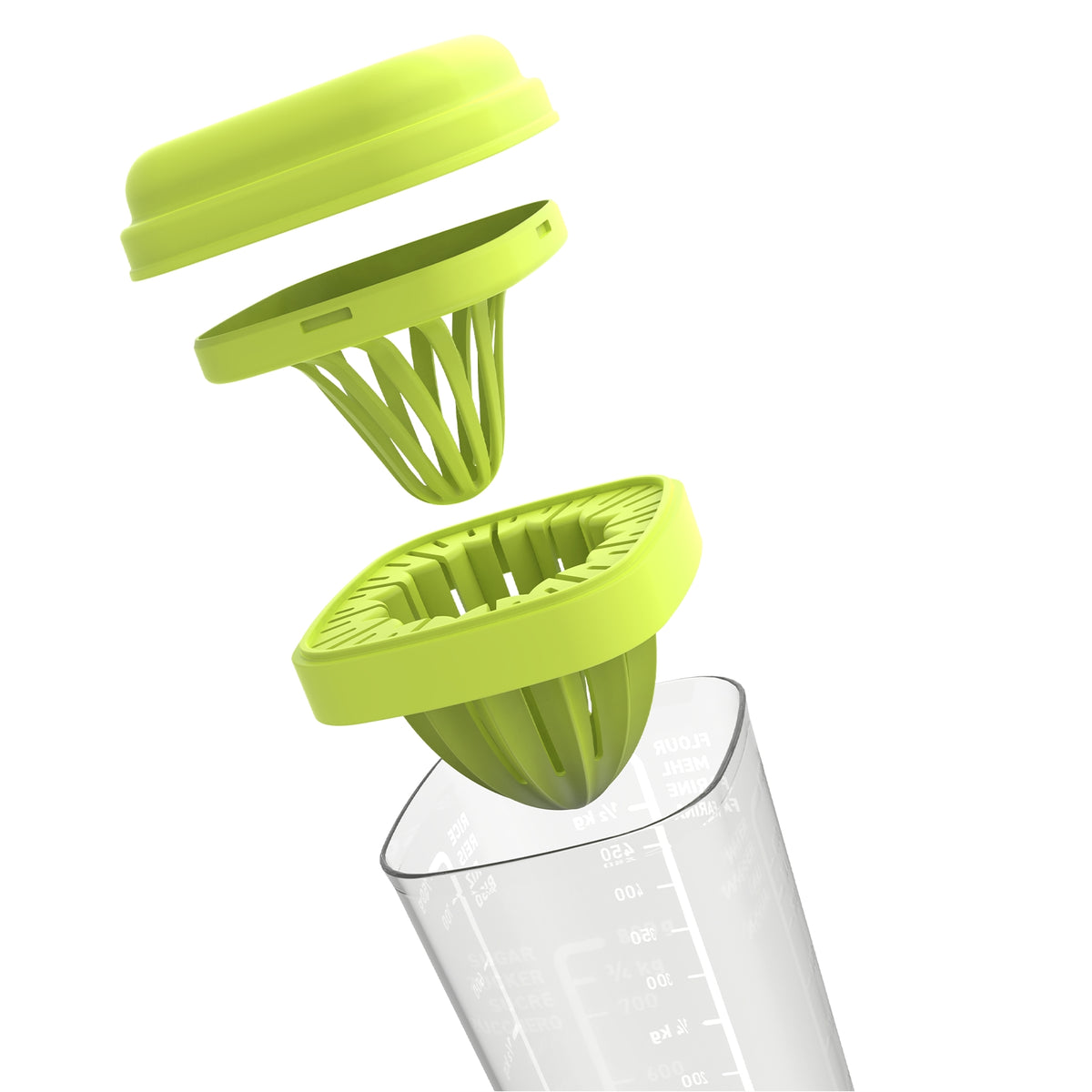 - Tasse à mesurer polyvalente avec couvercle et accessoires en plastique de haute qualité (SAN/PP), sans BPA